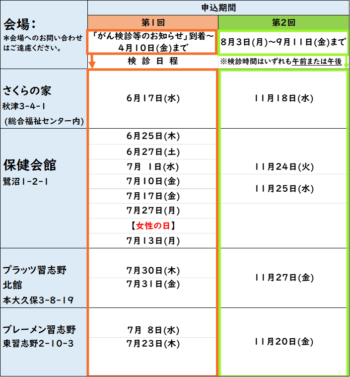 ※状況に応じて検診の中止を行う場合があります。 最新情報は順次ホームページに掲載します。