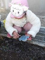 砂場にできた水溜りでじゃぶじゃぶ。泥んこになってもへっちゃらです!