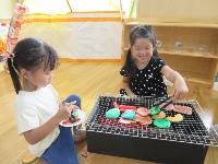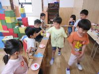 暑い日が続きましたが、氷や水風船に触れたり、室内に運動遊具を設定して体を動かしたりして楽しく過ごしました。