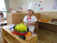 5歳児が栄養士に教えてもらいながらみそ作りをしました。「おいしくなあれ」と願いを込めながら、指や手の平を上手に使って大豆を潰したり、丸めてみそ玉を作ったりしていました。冬まで寝かせ12月頃に完成予定です。美味しいみそが出来ますように!