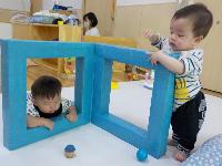 保育者と目を合わせてにっこりしたり、好きな遊びをしたりする姿が見られます。