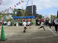 ゴールで年長児が持ってくれているケーキの絵を目指して思い切り走りました。