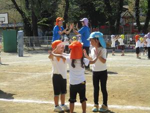 年長組の子どもたちは少し緊張している様子も見られましたが、1年生とジャンケン列車やフープ送りなどのゲームをして触れ合う中で、少しずつ親しみをもって関わる姿が見られました。