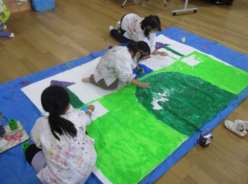 自分たちで決めたお城の色を、みんなで塗っています!