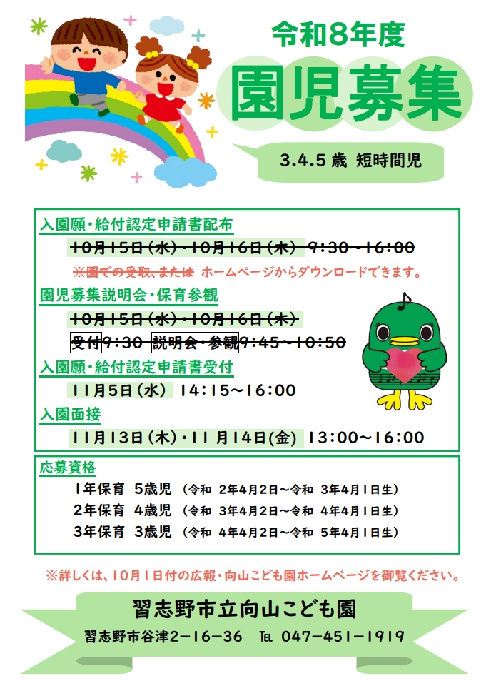 10.令和8年度 向山こども園園児募集案内(短時間児)