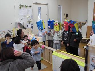 年長児が優しいちびっこ鬼役になって、乳児クラスに行きました。