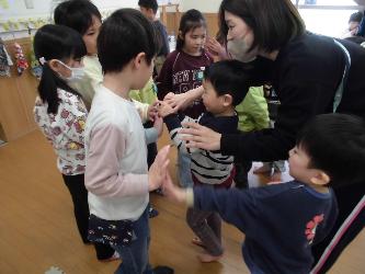 鬼役をしてくれた年長組さんに、「ありがとうね!」と最後は、手を合わせて挨拶をしました。