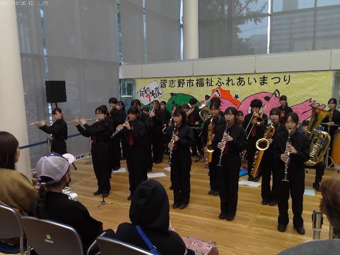 福祉ふれあいまつり(吹奏楽部) Tweet 更新日:2025年10月27日 10月26日(日曜日) 習志野市役所で福祉ふれあいまつりが行われ、ステージイベントの最後に吹奏楽部が演奏をしました。たくさんの声援と拍手をいただき、ありがとうございました。