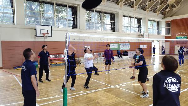 地域のスポーツ推進委員の皆様が企画・運営してくださった「ヘルスバレー大会」に職員チームで参加しました。私たち”ティーチャーズ”はふわふわの巨大なラグビーボールみたいなボールに翻弄されながらも、着実に勝利し第3位に輝きました。小学生から大人までみんなで夢中になって楽しめるスポーツを体験することができました。ありがとうございました。