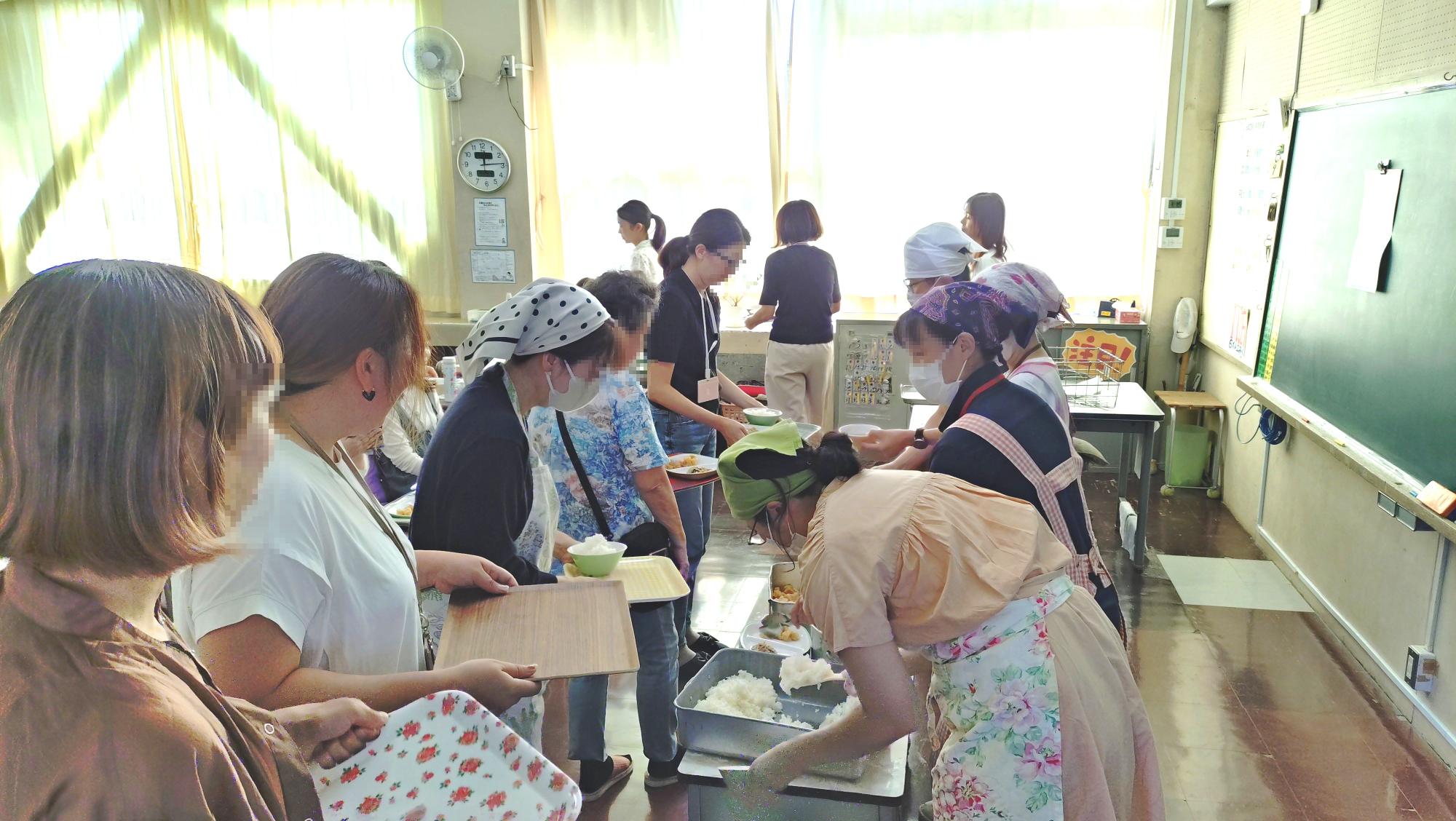 PTA主催、家庭教育学級の一環として、給食試食会がありました。試食会のメニューは、ごはん、牛乳、凍り豆腐の肉そぼろあんかけ、納豆和え、沢煮椀でした。講師の植田から、児童に給食を提供するにあたり、食べやすくなるよう工夫をしていること、料理の名前の由来になっていること、など「食育」をテーマにお話をさせていただきました。今回の試食会を機に、御家庭においても、食について話し合っていただければありがたく思います。参加してくださった皆様、ありがとうございました。