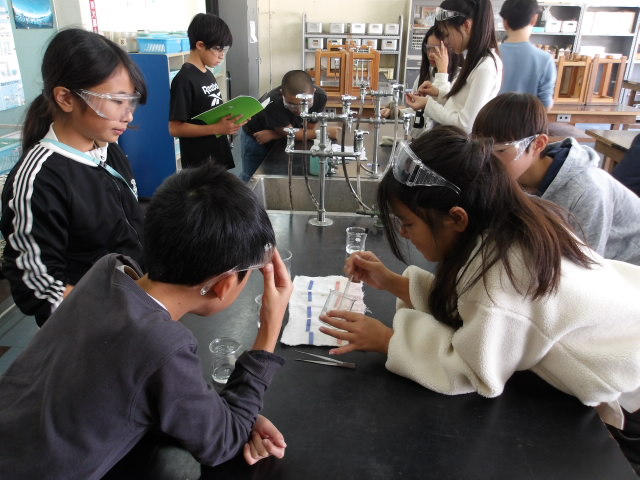 6年生が水溶液調べで、リトマス試験紙を使っていました。「これはアルカリ性だから…」