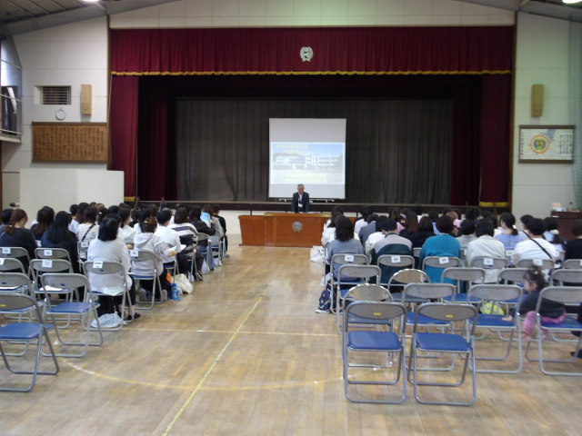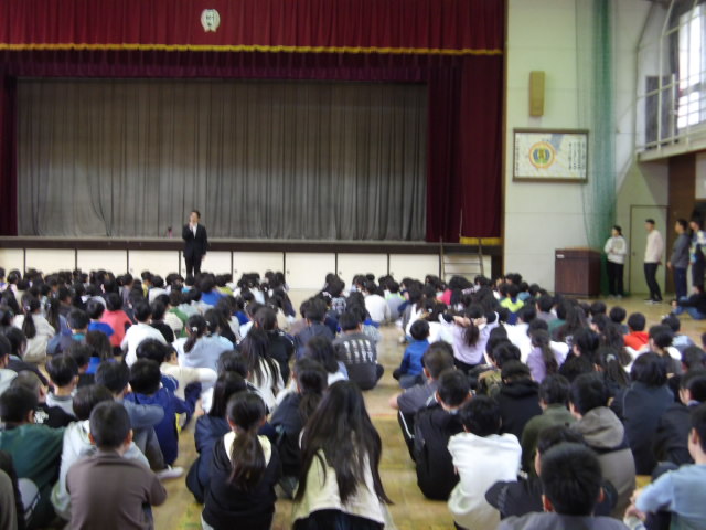 体育館に避難した後、習志野警察署の方からお話をうかがいました。「いかのおすし」を守って生活しましょう。