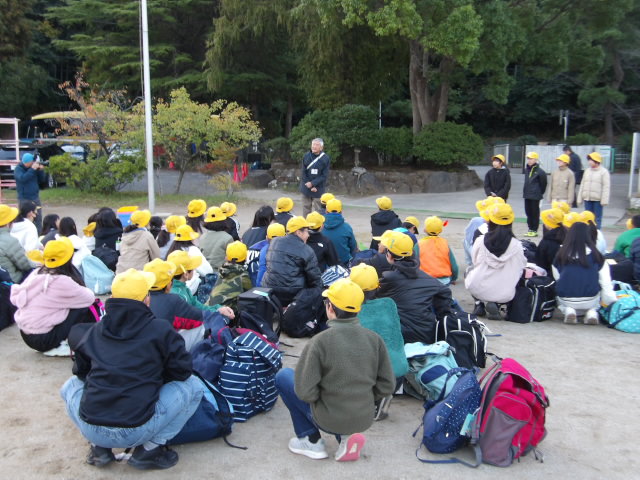 出発式の様子です。校長先生は、温泉が楽しみなのだそうです。天気も良いようで、良かったですね。