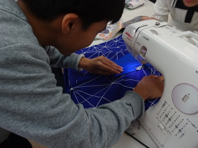 ポケットにする布をアイロンがけで折り目をつけています。これでミシンがけが楽ですね。