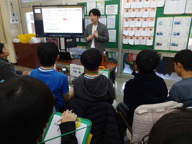介護士、コンサルタント、システムエンジニアなどのお話を伺い、職業について学びます。