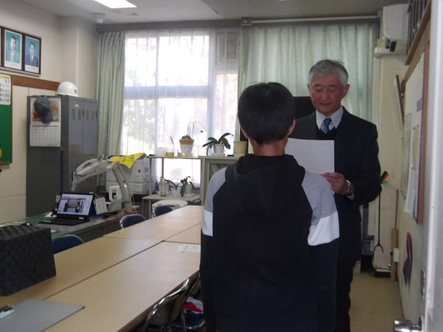 閉会式は校長室からオンラインで行いました。