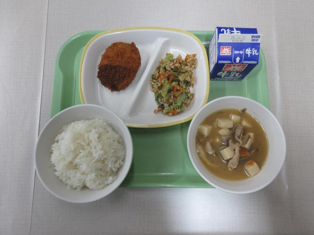ご飯 納豆和え 野菜コロッケ 豚汁 牛乳