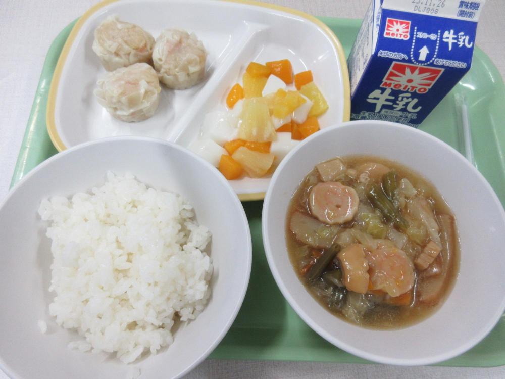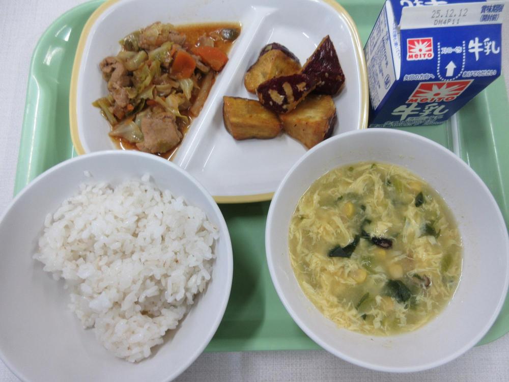 麦ご飯 回鍋肉 中華風コーンスープ サツマイモの中華煮 牛乳