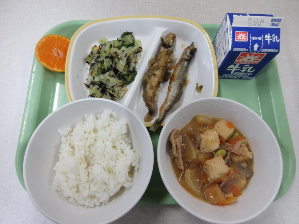 ご飯 べっ甲煮 シシャモの甘酢だれ ひじきサラダ 牛乳 みかん