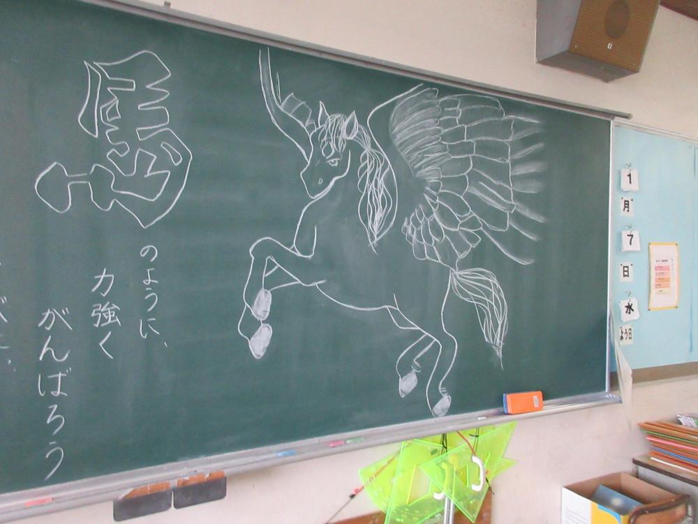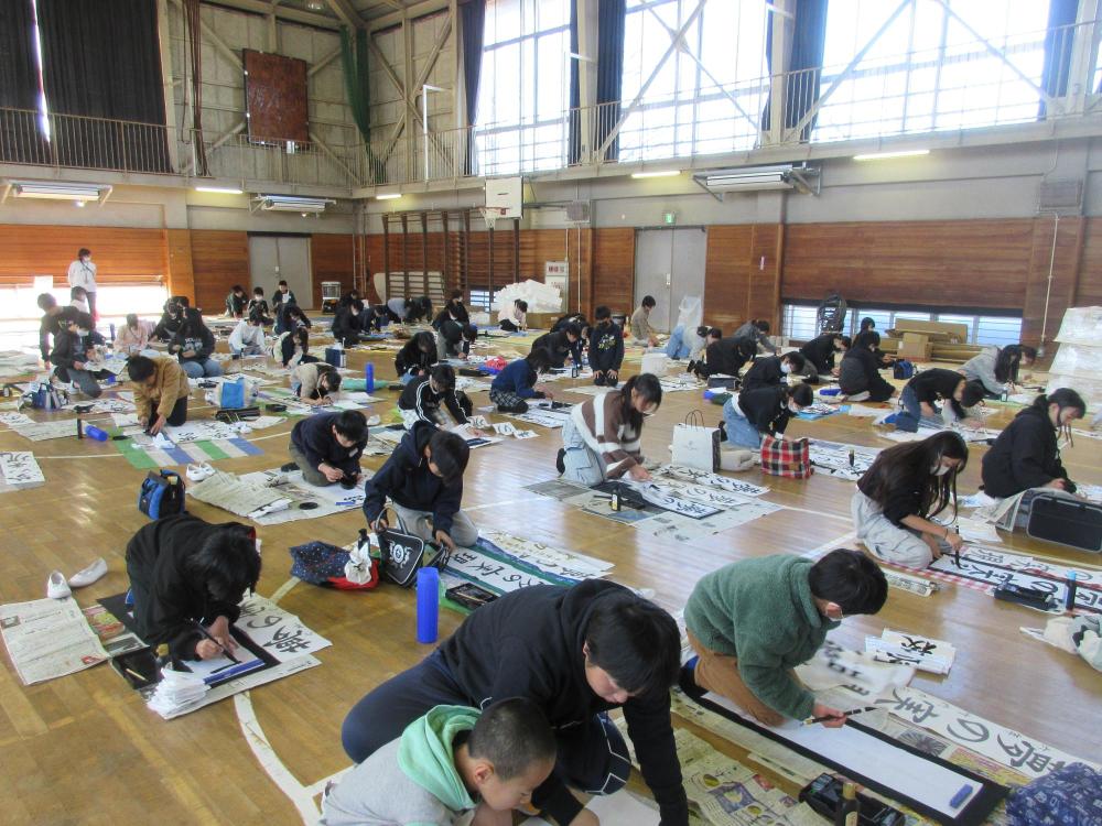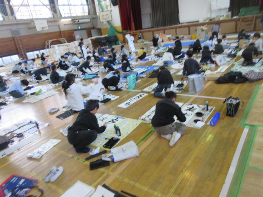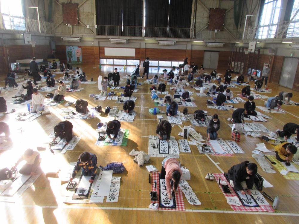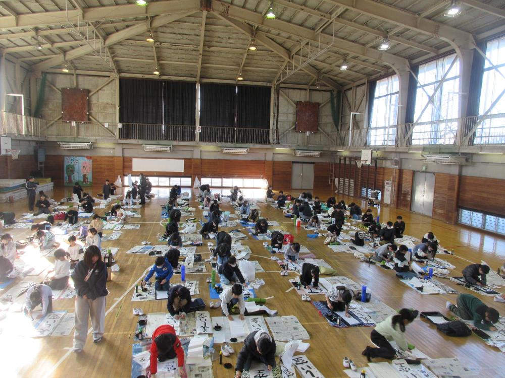 今日は5・6年生の席書会がありました。この写真は6年生の様子です。みんな、集中していました。