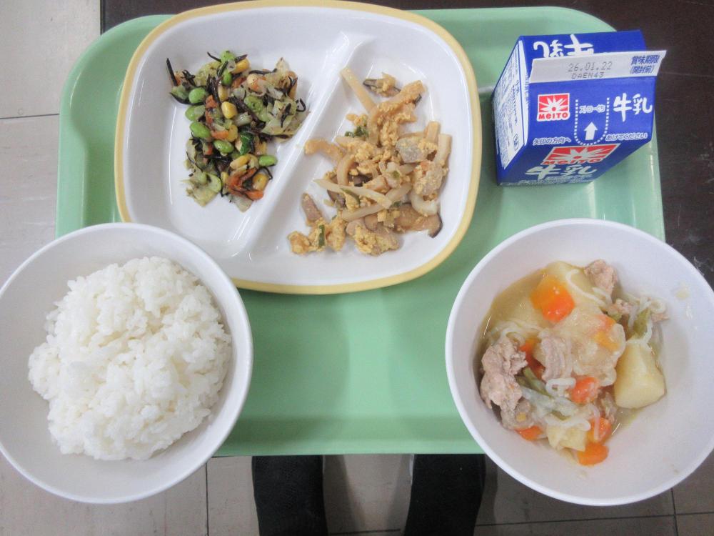 ご飯 鯖のオレンジ煮 具沢山汁 味噌ポテト 牛乳