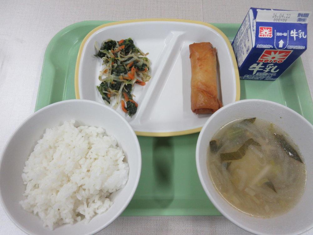 ご飯 春巻き ナムル トックのスープ 牛乳