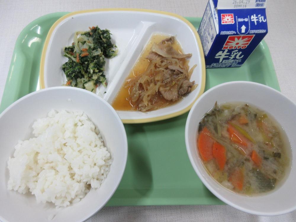 ご飯 豚丼の具 石狩汁 胡麻和え 牛乳