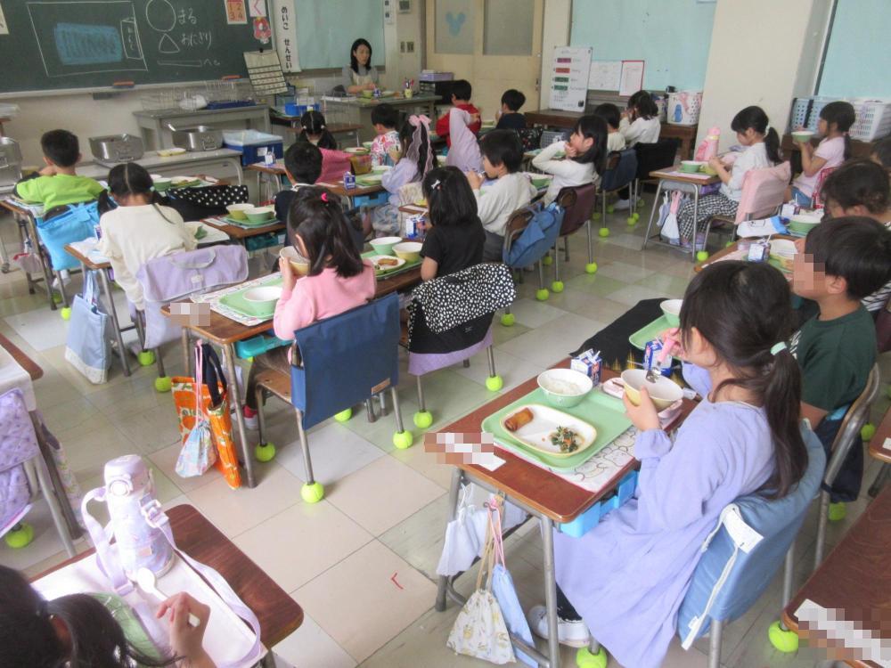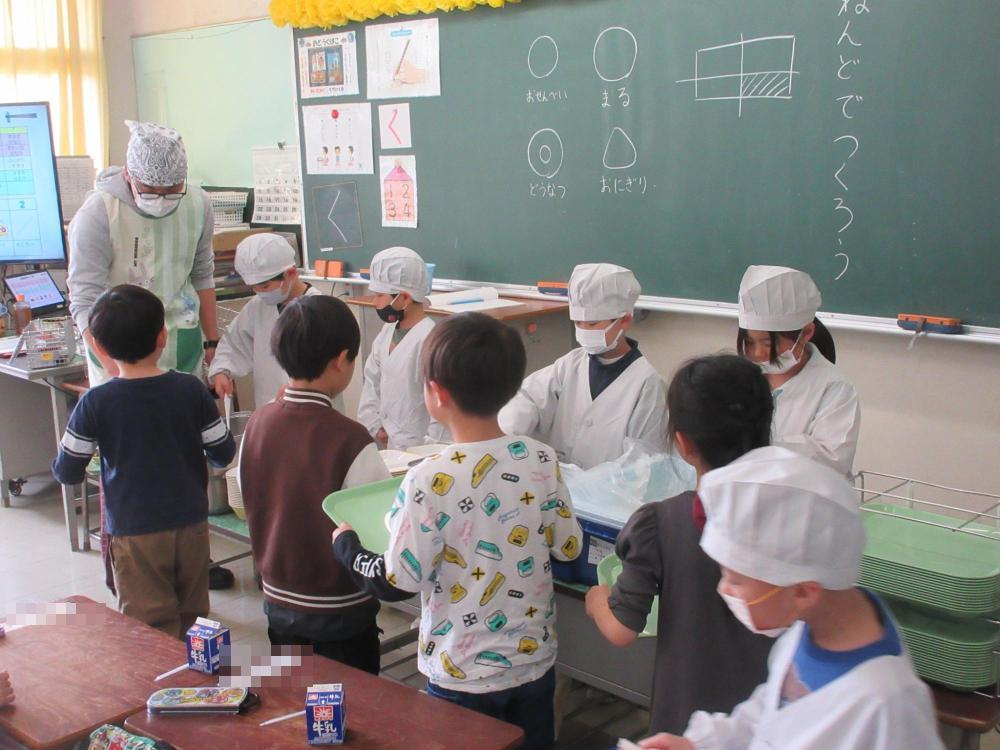 本日から1年生の給食が開始しました。給食当番さんは、上手に配膳できたようです。