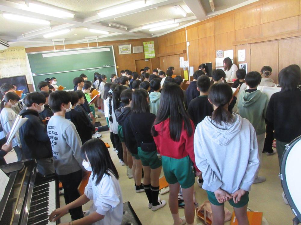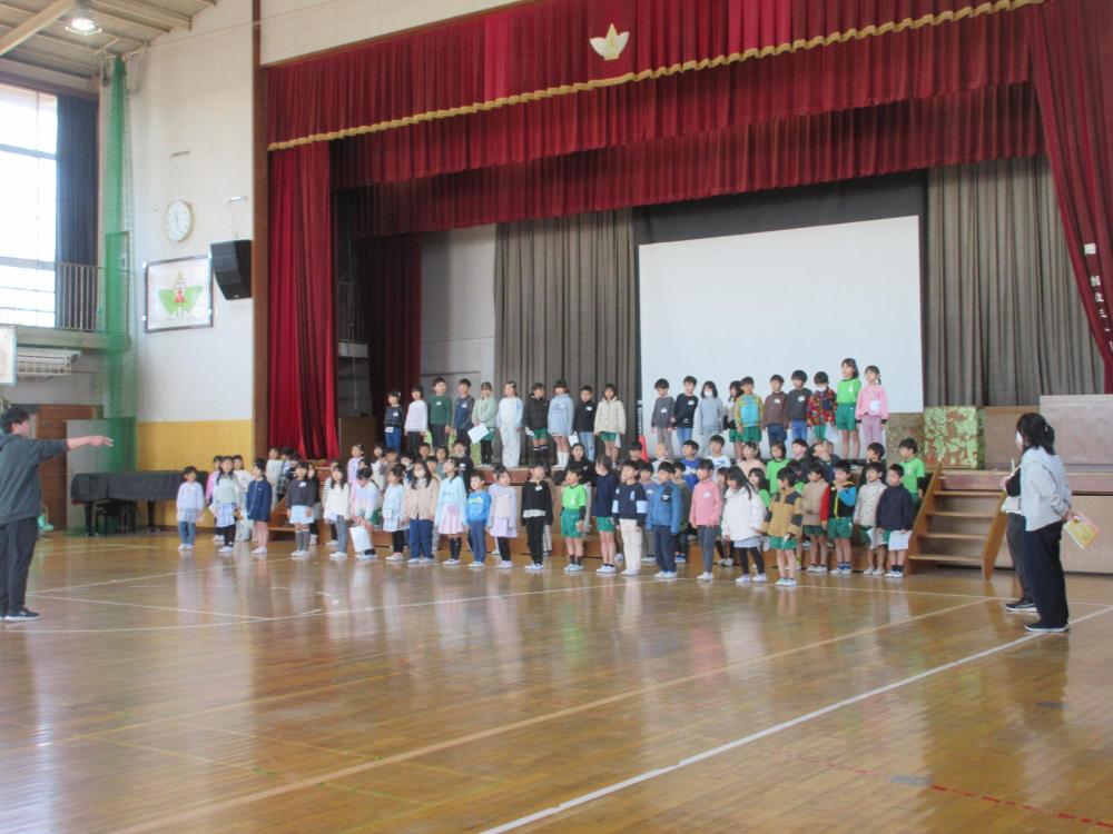1年生が「お別れ音楽会」に向けて、体育館で学年練習をしていました。