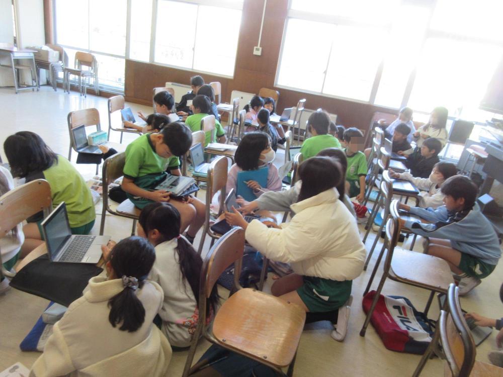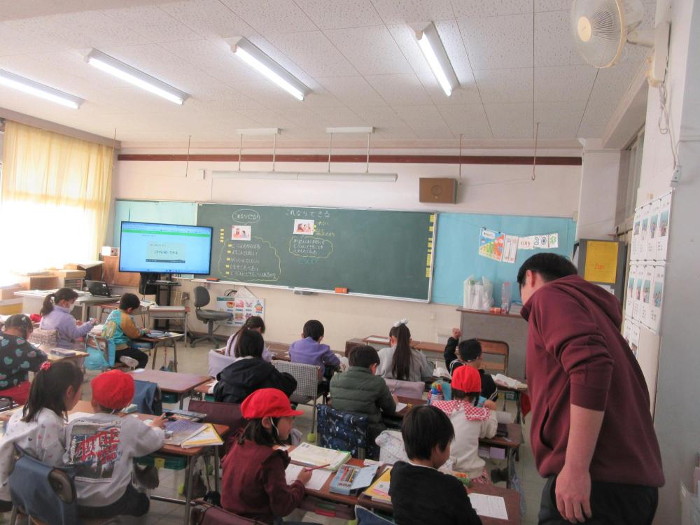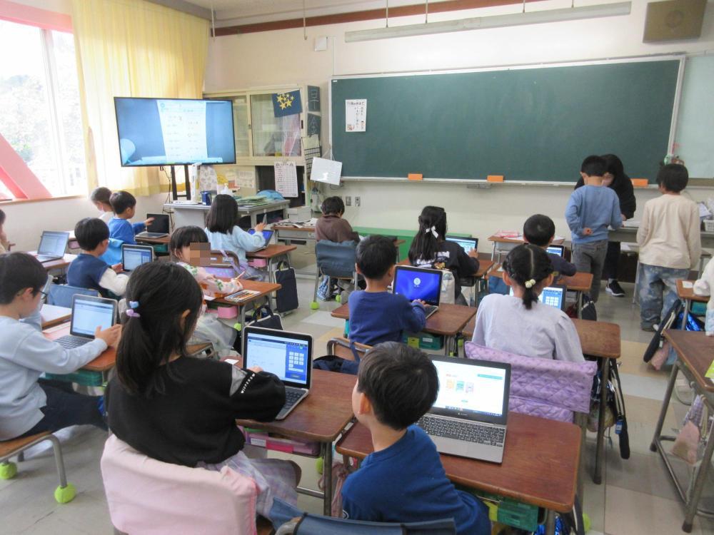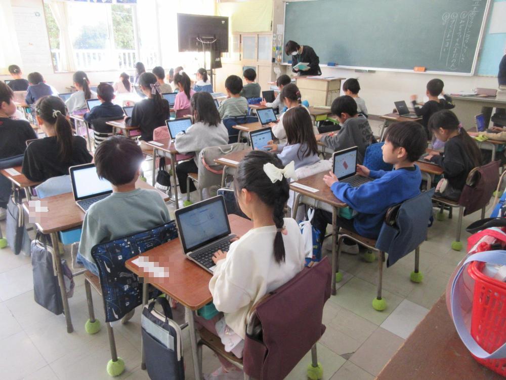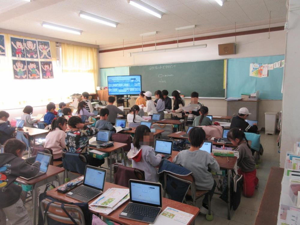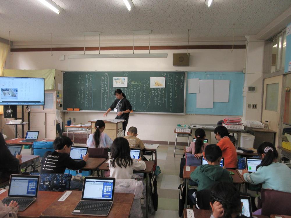 1年生がタブレット学習をしていました。手書きで文字入力に挑戦