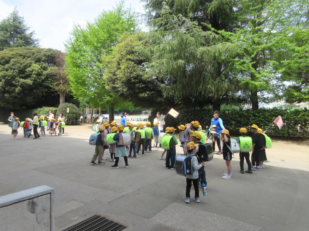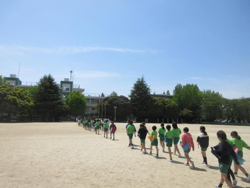 1年生が下校します。給食が始まったら、休み時間たくさん遊ぼうね♪