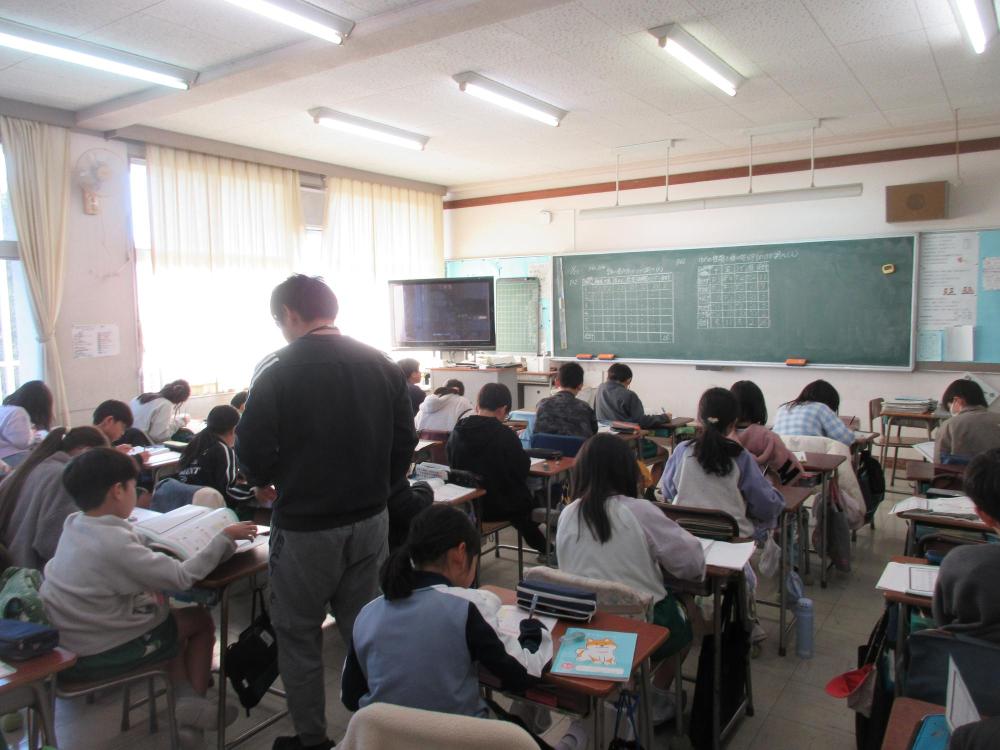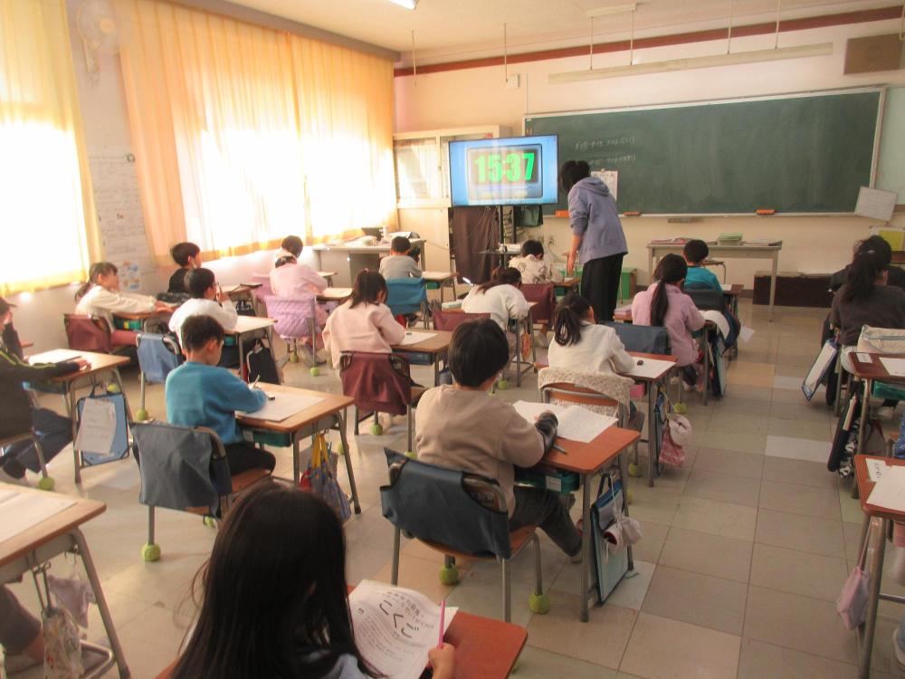 6年生の教室では、張りつめた空気を感じました。集中してますね。