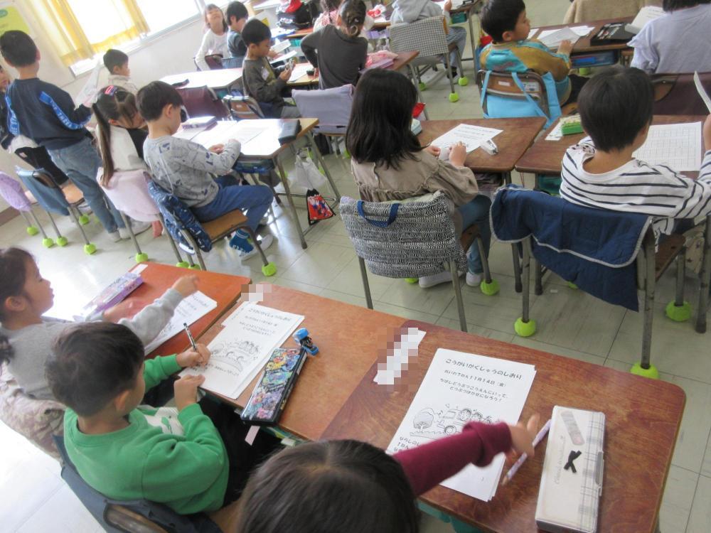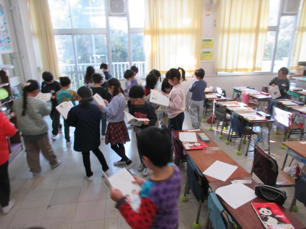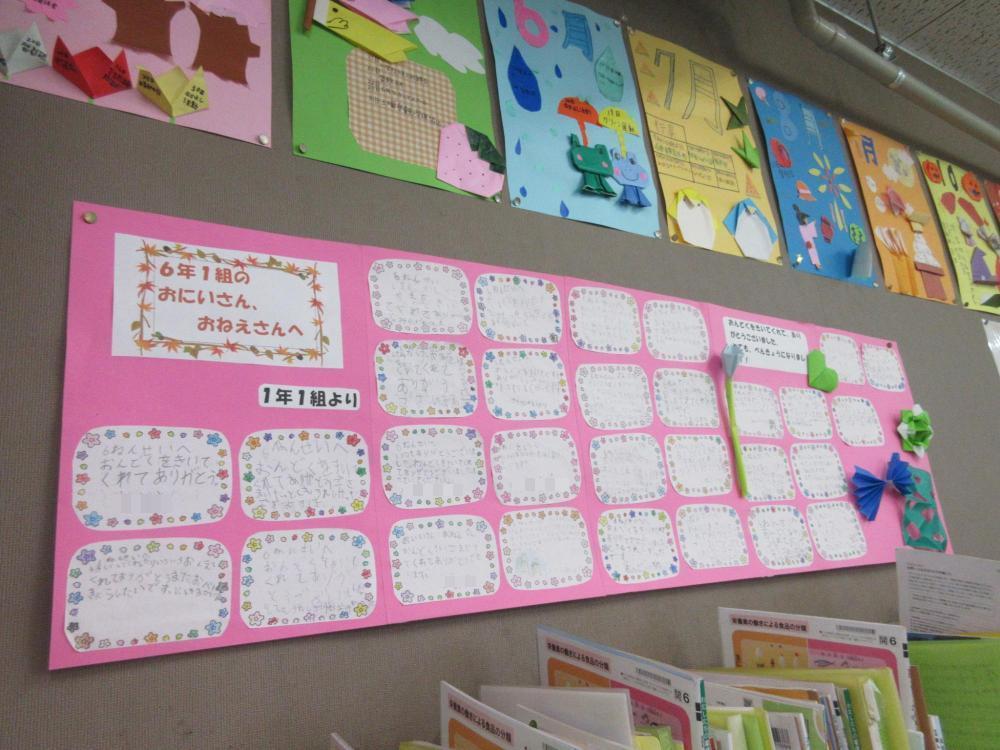 先日、6年生が1年生の音読発表会にお客様として呼ばれました。そのお礼のメッセージが11年生から6年生へ届いていました。