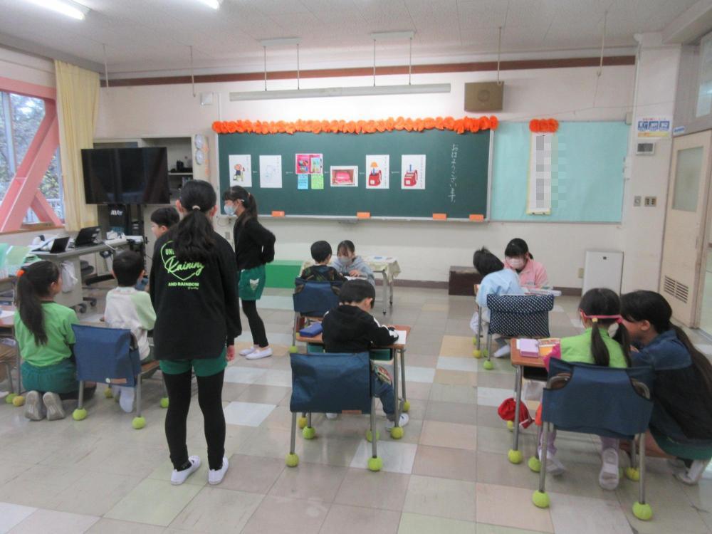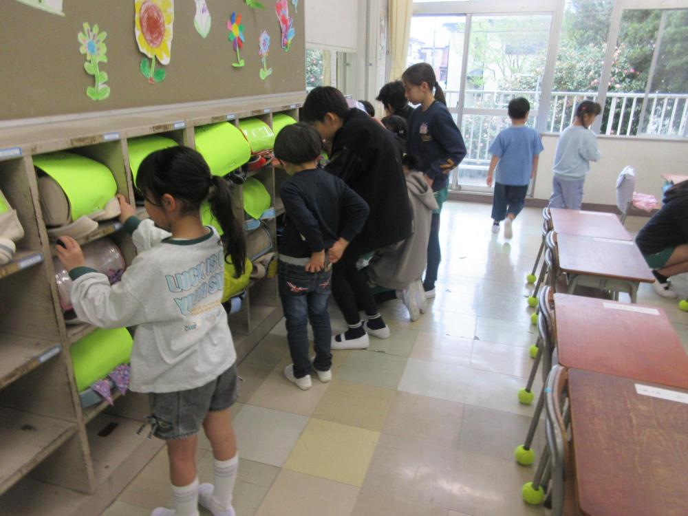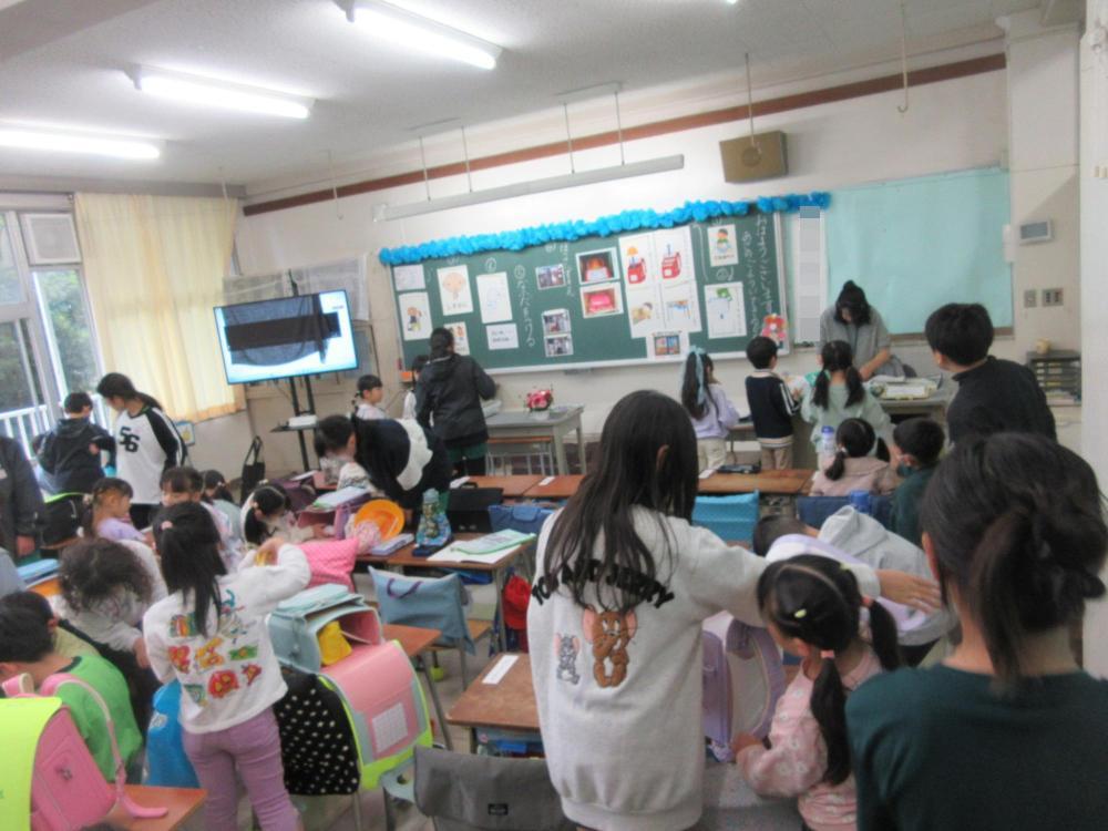 6年生がいつもより早く登校してくれて、1年生にやさしく、丁寧に教えてくれました。