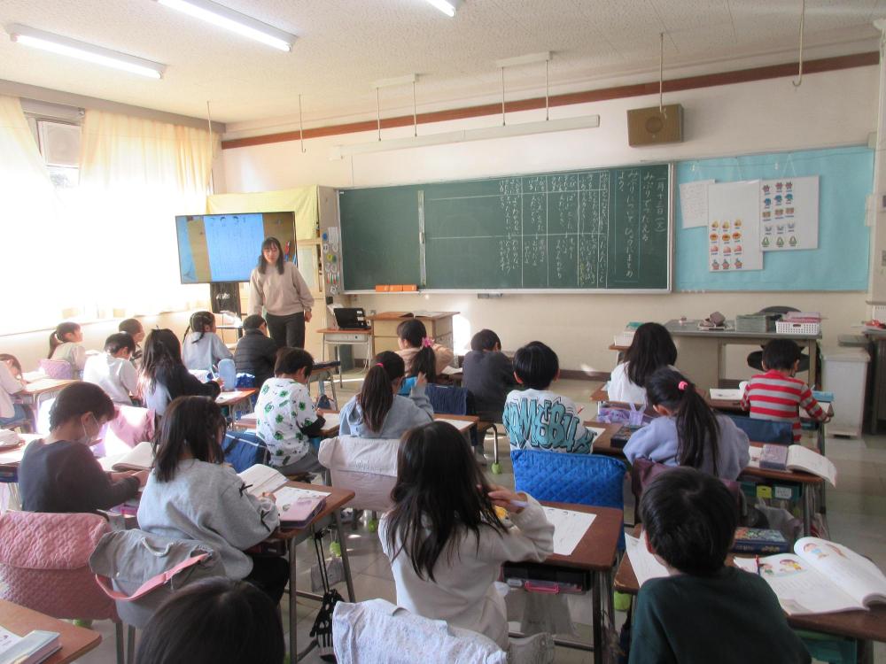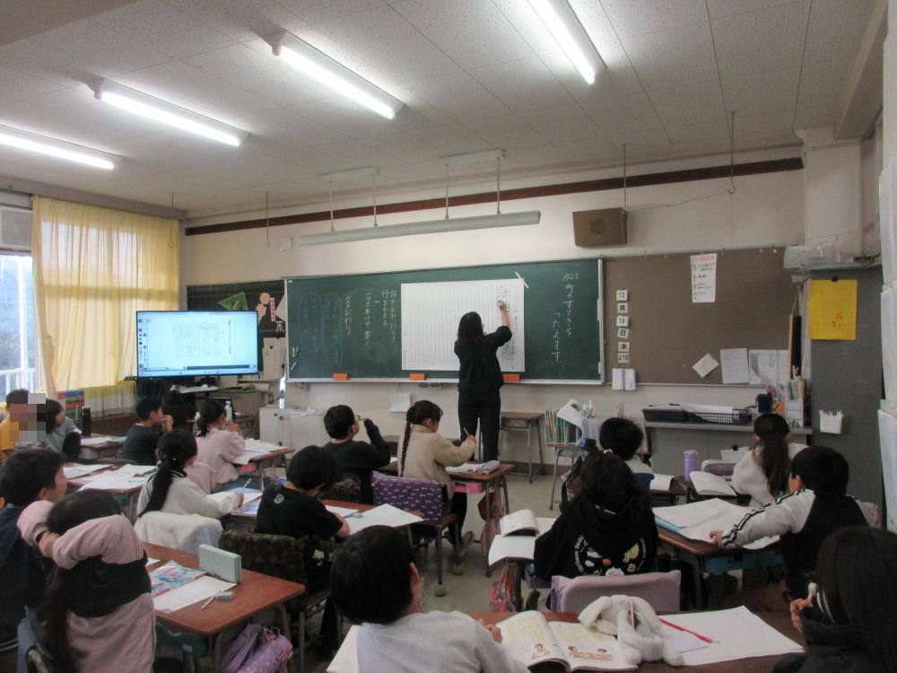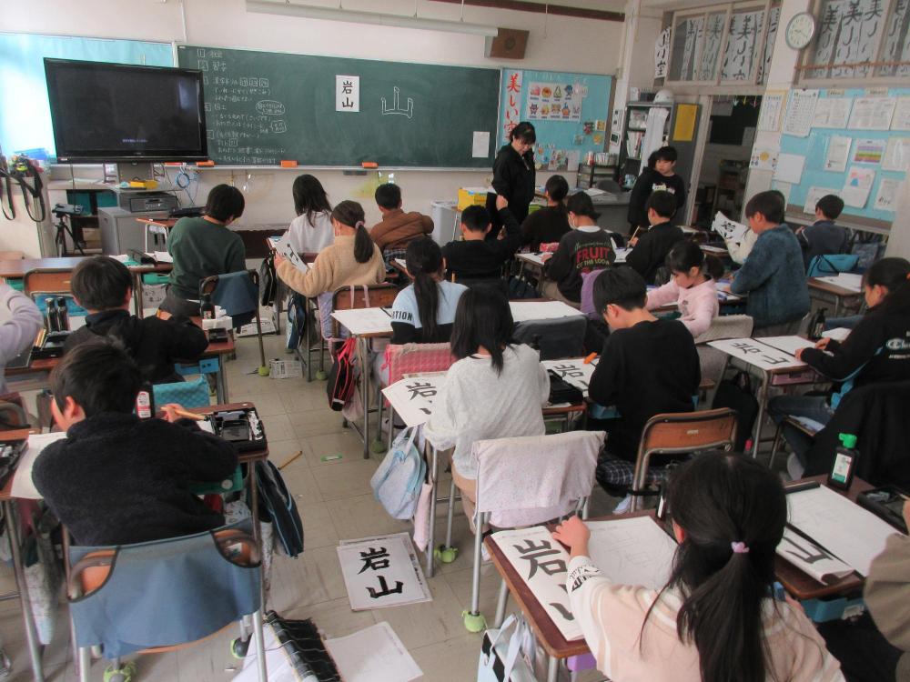 4年生 ぴんと張りつめた空気の中、集中して書いていました。