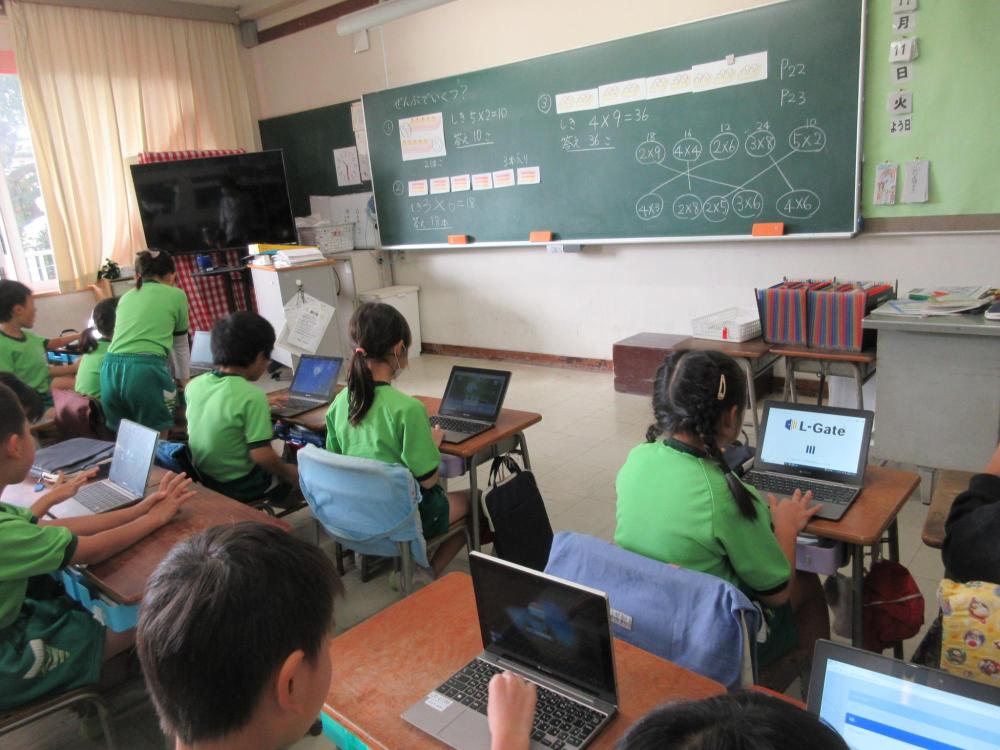 2年生 かけ算九九の学習 タブレットも活用しています。