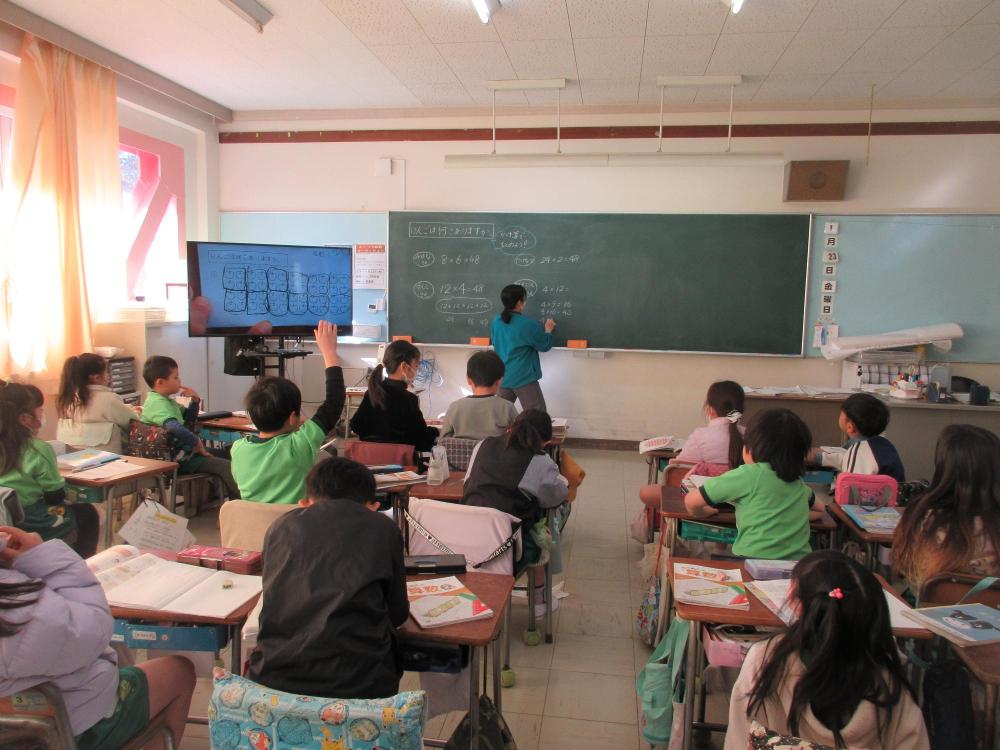 1-1今、1年生では算数で大きな数を学習しています。こちらの学級はおはじきゲームで量感を養います。