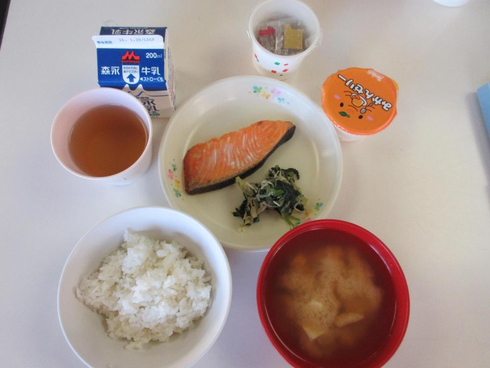ご飯 鱒の塩麴焼き 竹輪と揚げボールの煮物 納豆和え はるか 牛乳