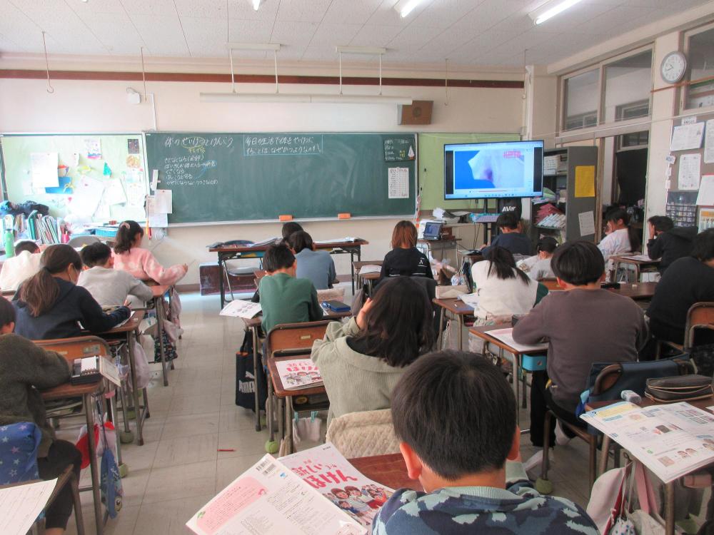 6年生に向けて、弁護士によるいじめ防止講話がありました。みんな真剣に話を聞いていました。