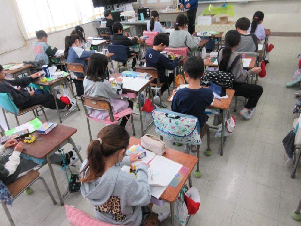 1年生 図工 紙袋で工作をしていました。楽しそうです。