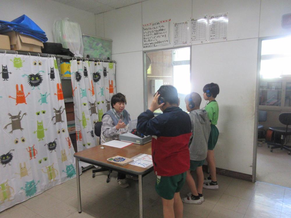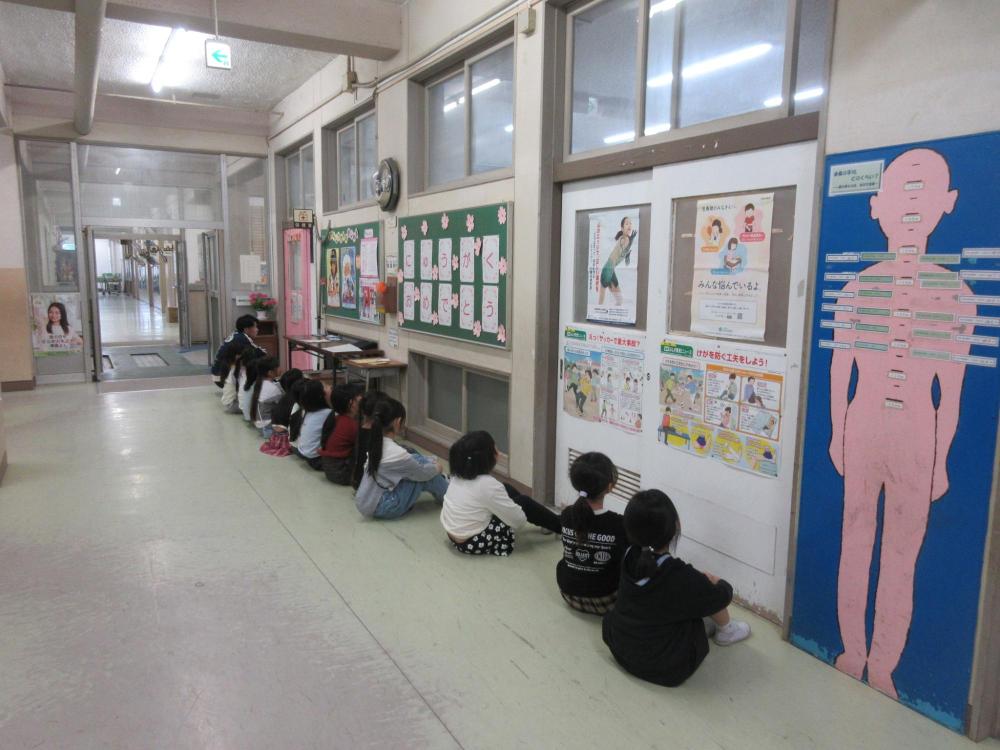 1年生の聴力検査がありました。静かに廊下に並んで待つ姿に成長を感じました。
