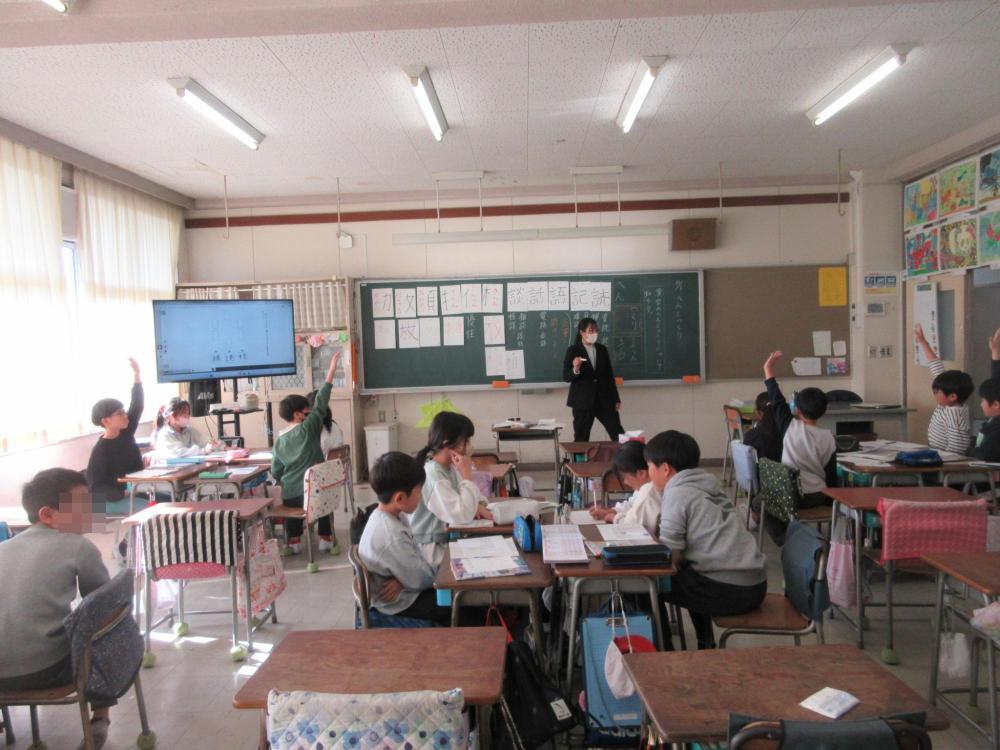 3年生国語の授業「へんとつくり」手の上げ方がピンとしてかっこいいですね!