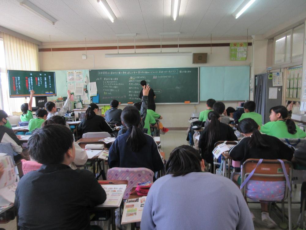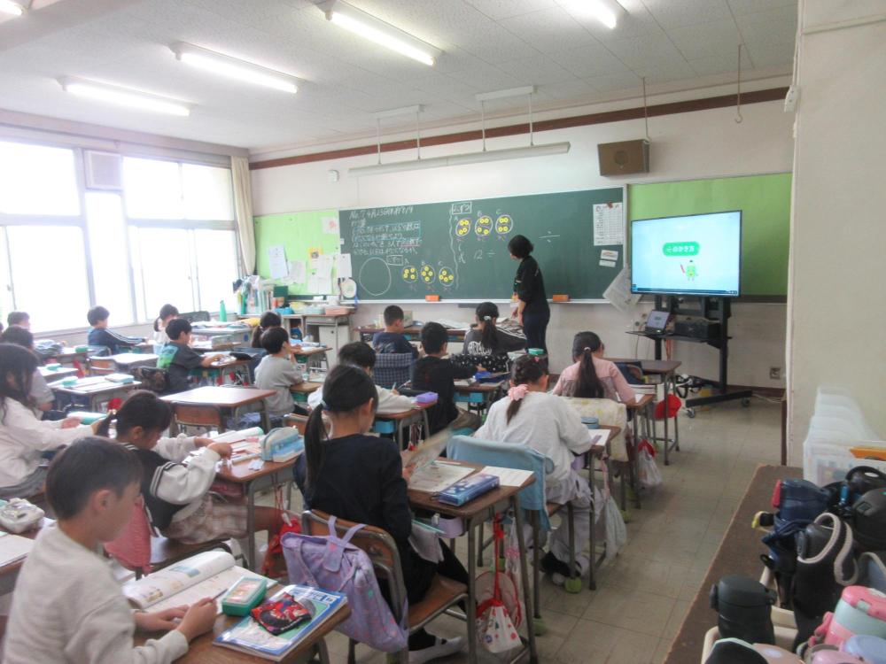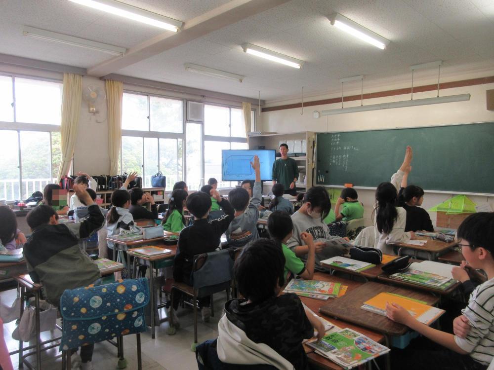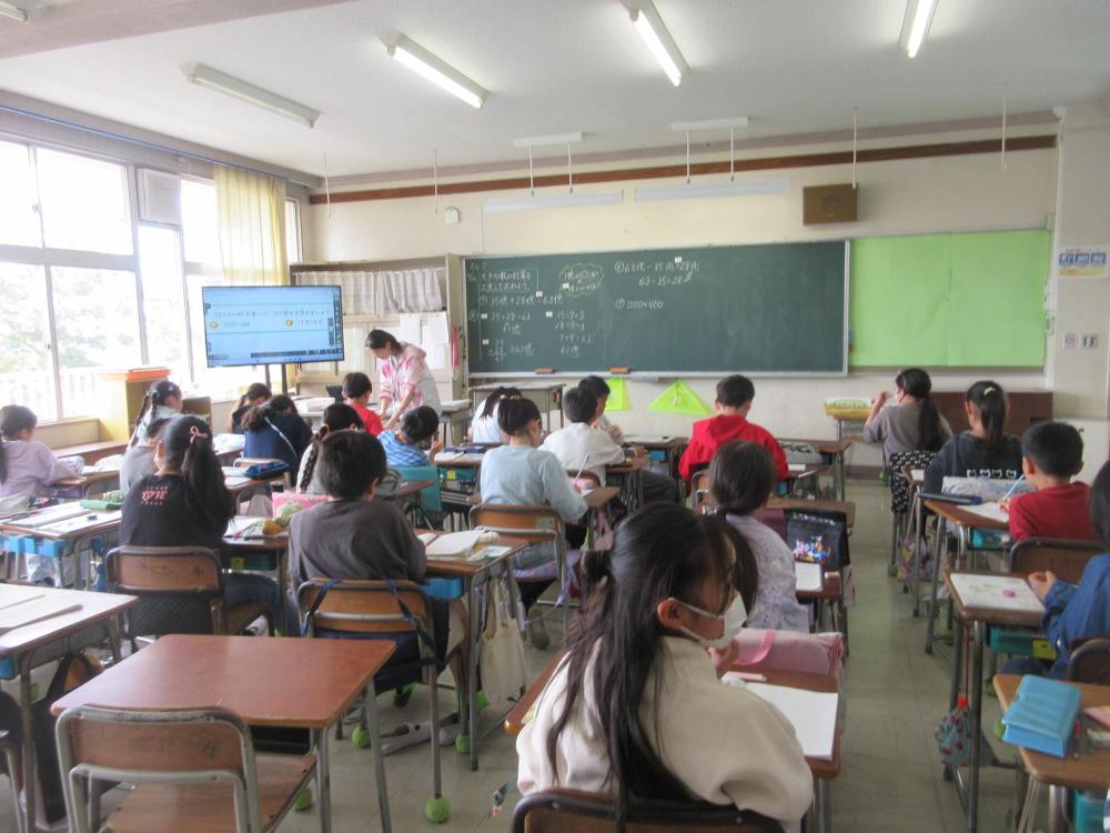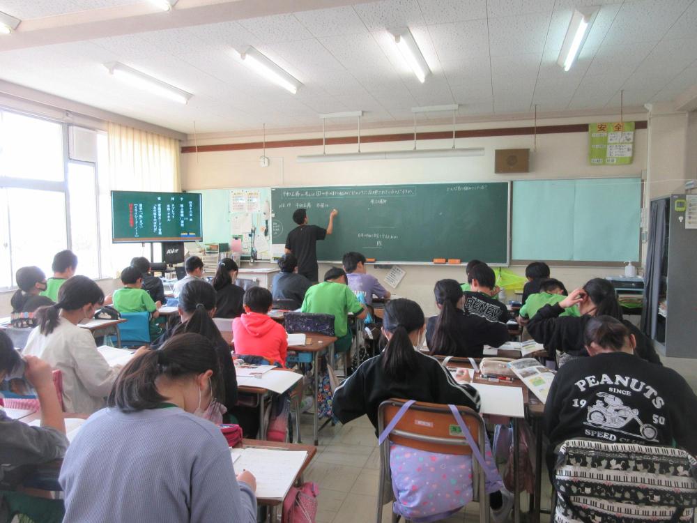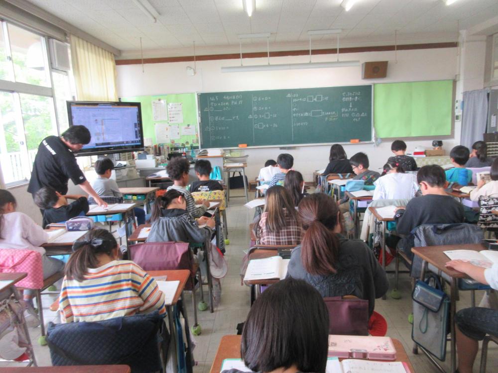 5年生 授業開始の前に、教科書などを確認。先生をよく見て、良い姿勢でお話を聞いていますね。