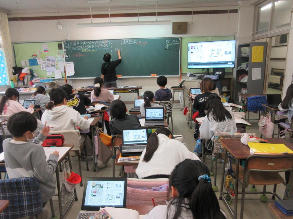 1年生国語 「うみへのながいたび」タブレットを用いてまとめです。