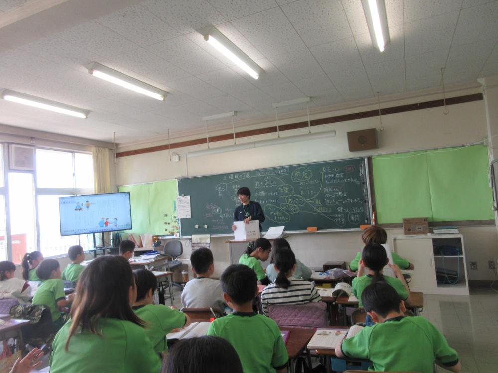 この2年生の学級では、担任の先生が自己紹介をしていました。