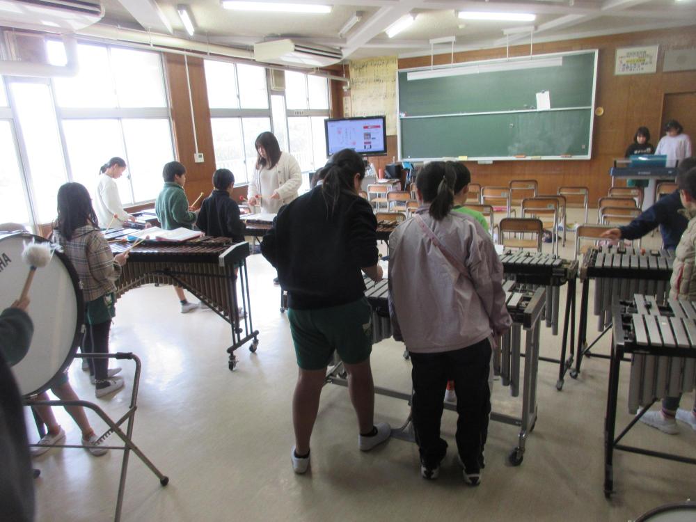 音楽室でが打楽器などの練習 どんどん上達しています。