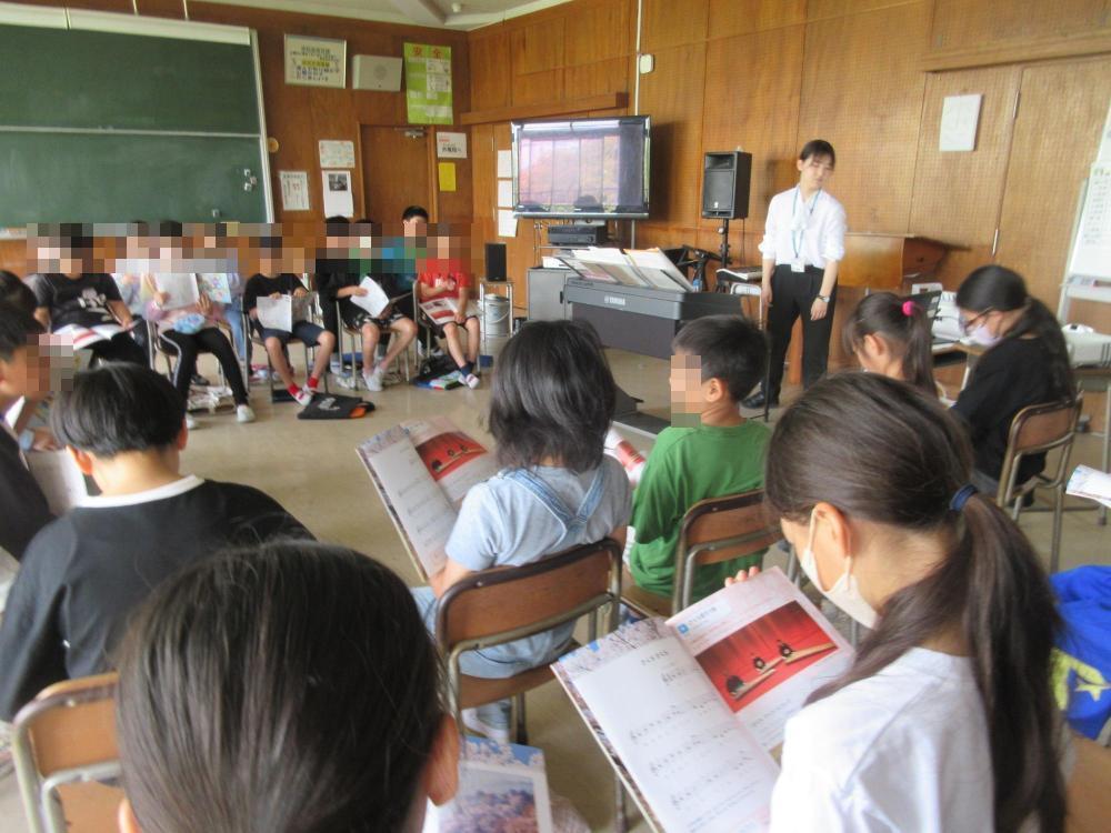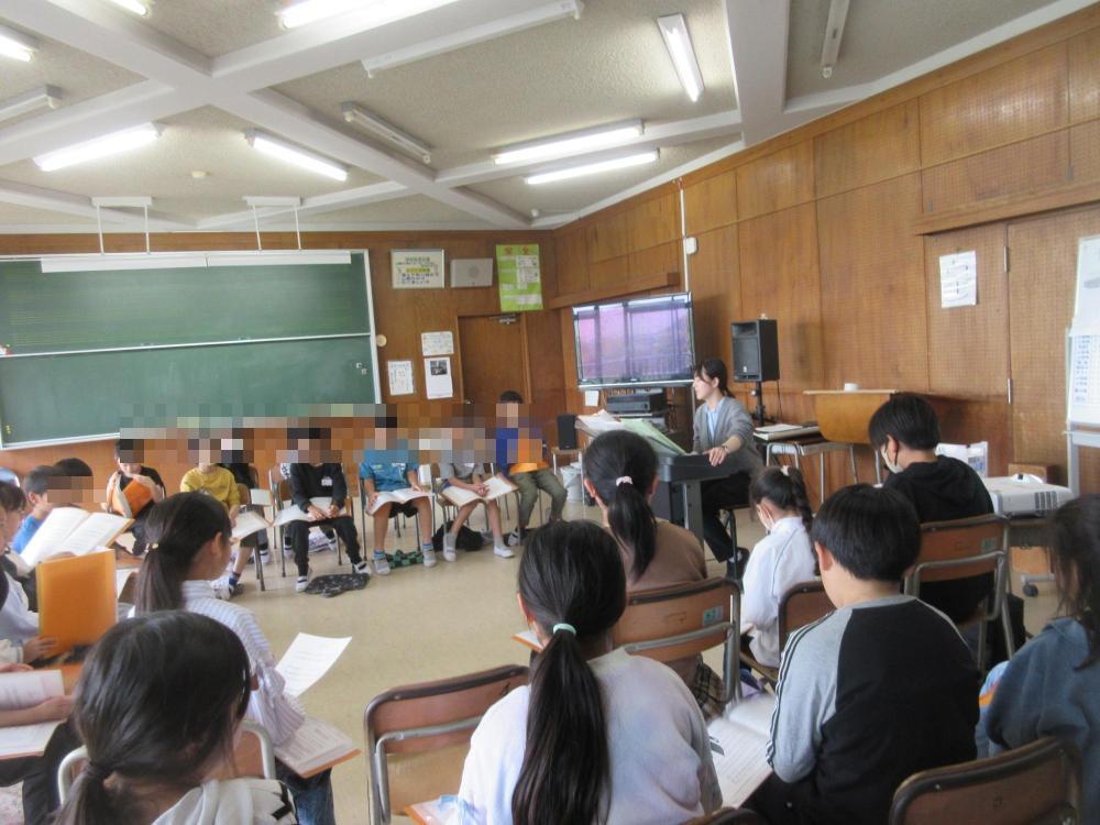 5年生が鹿野山セカンドスクールに向けて、合唱の練習。伸びやかできれいな声でした。