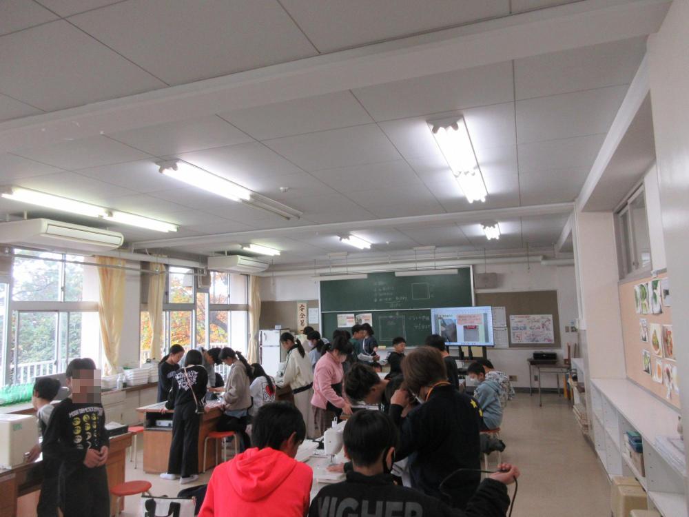 5年生家庭科 今日はミシンボランティアの保護者の方々が来てくださいました。
