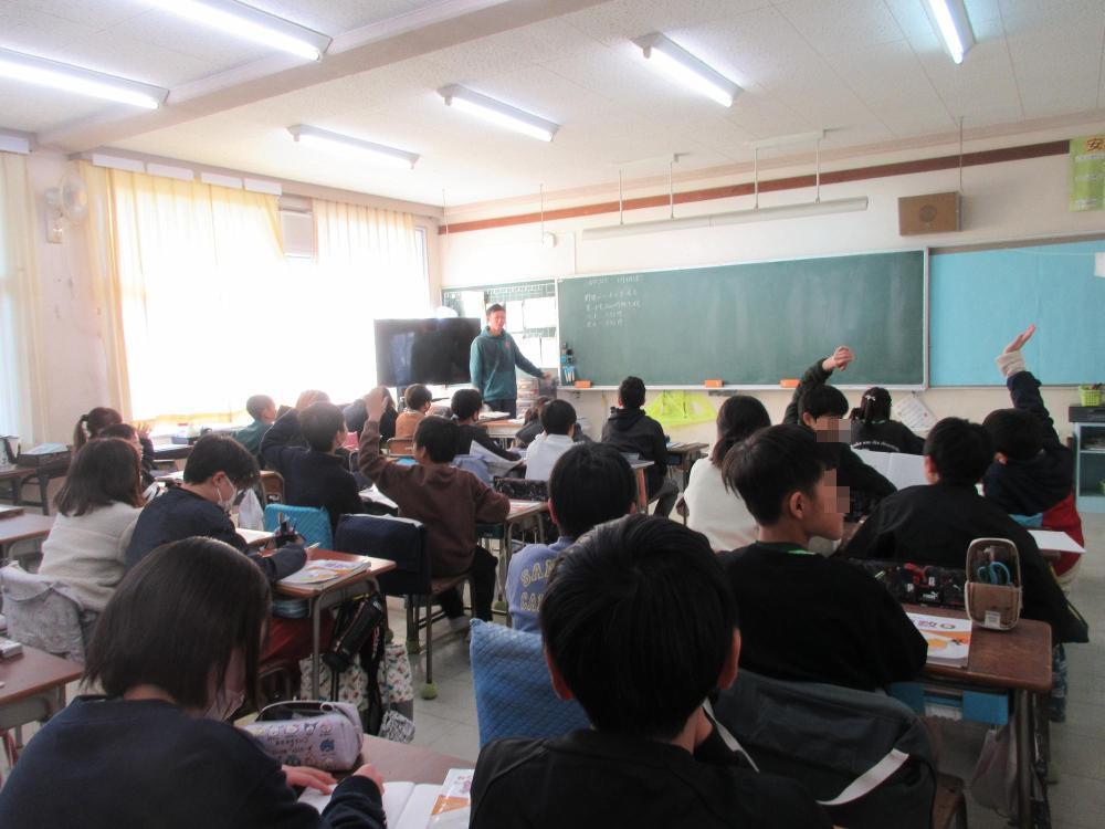 ALTニミー先生が、2年生で英語の授業をしてくれました。みんな、興味津々