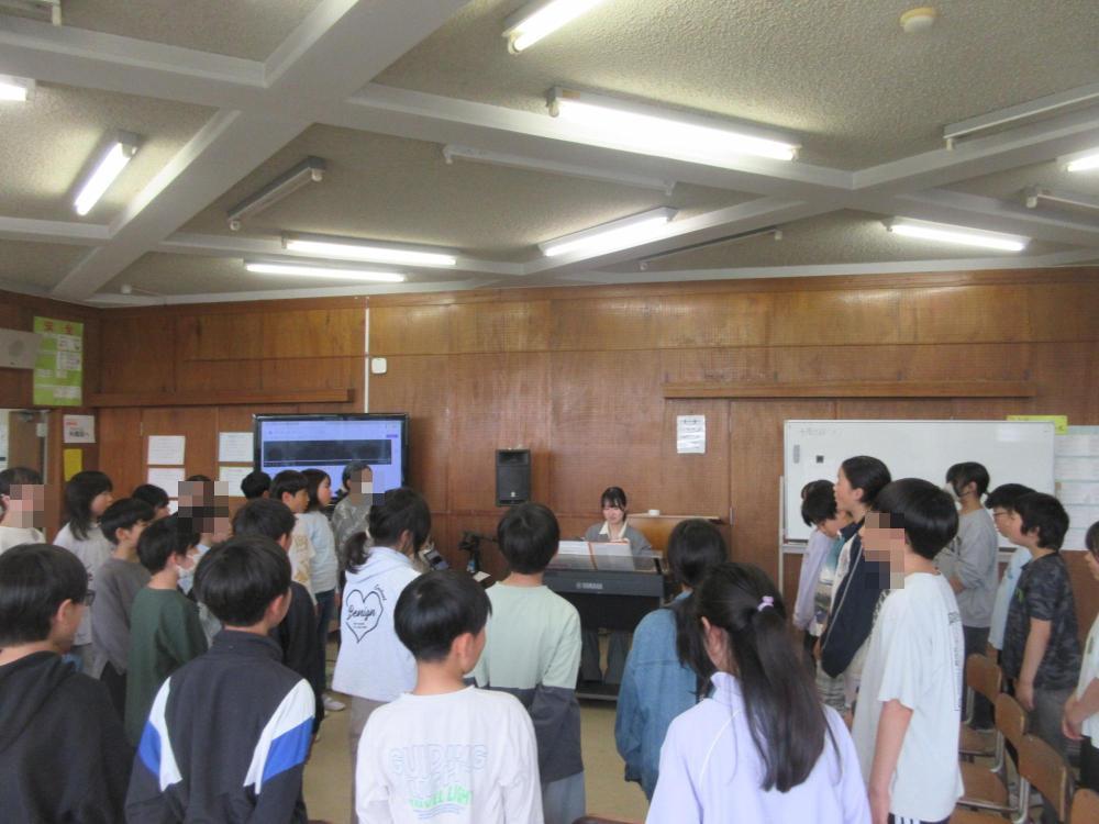 音楽室からきれいな歌声が聞こえてきました。行くと5年生が歌っていました。
